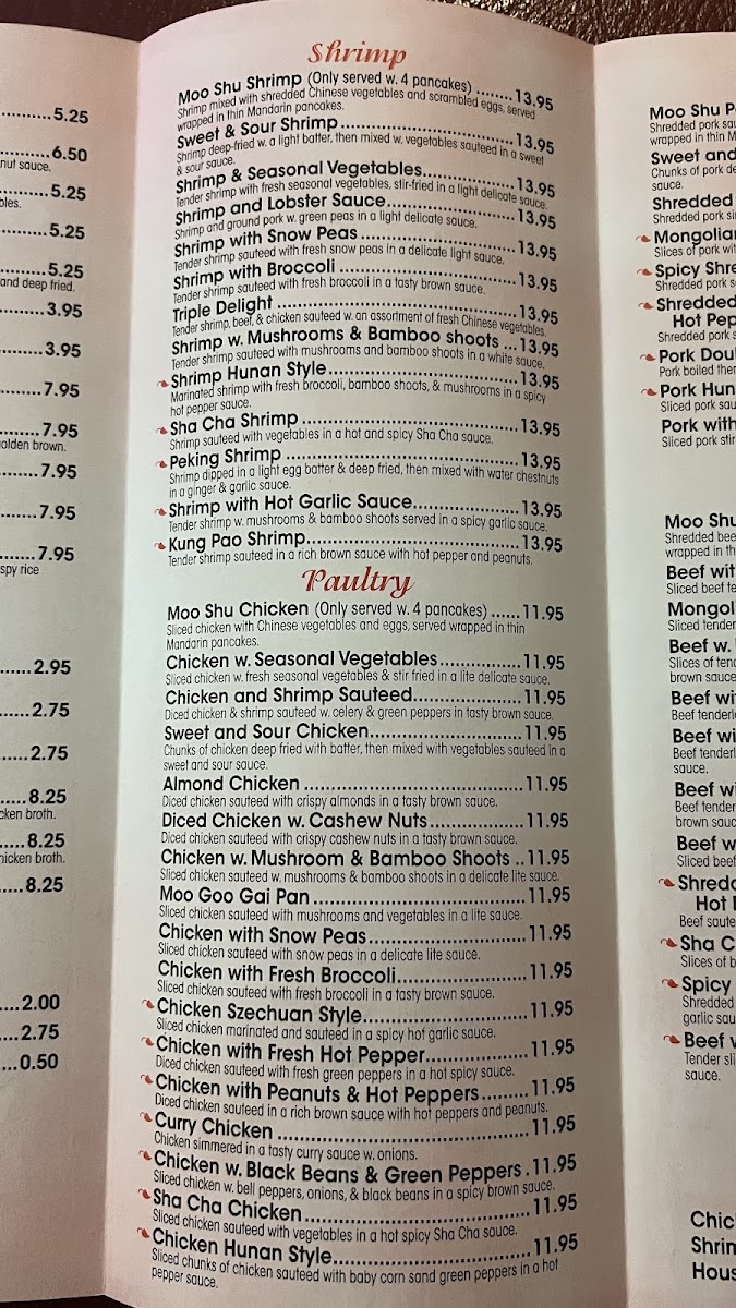 Chicken and shrimp sauteed in a rich brown sauce with red peppers and peanuts. Hot and spicy.